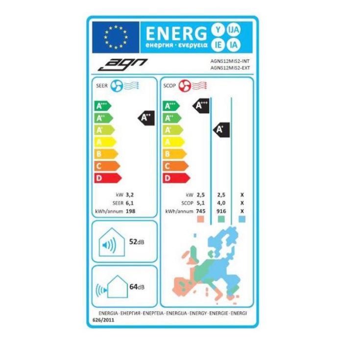 Aire Acondicionado 3000 frigorias Split 1x1 AGN AGNS12MIS2
