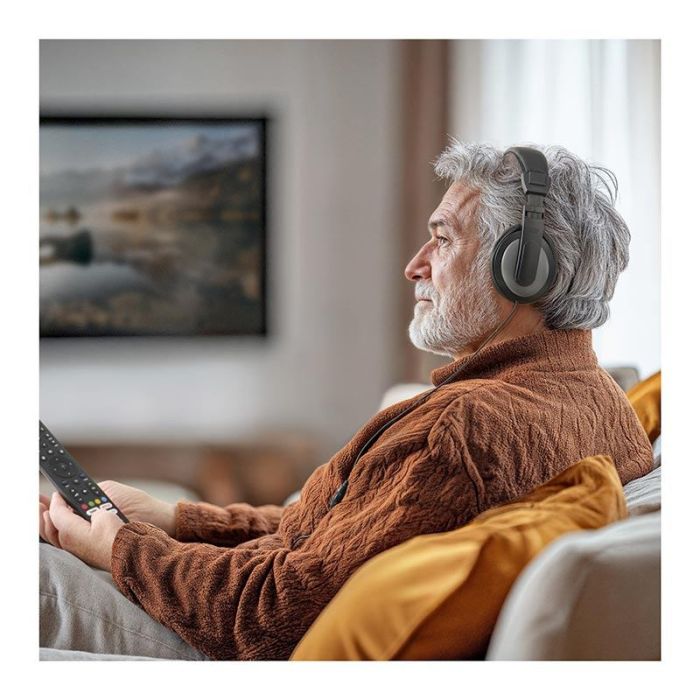 | Características adicionales | - El ajuste perfecto reduce los ruidos exteriores no deseados para que pueda disfrutar de su música sin interrupciones - Auriculares de tipo "Cerrado" que cubren totalmente la oreja para un buen aislamiento del ruido exterior - Ajuste individual y continuo del volumen - Diadema acolchada para disfrutar cómodamente de la música, incluso durante largos periodos - Los auriculares cuentan con una diadema ajustable individualmente que se adapta a la forma de su cabeza - Cable extra largo (6 m), especialmente diseñado para la conexión a un televisor o a dispositivos HiFi - Paso de cable mono-lateral para disfrutar de la música con mayor libertad de movimiento - El recubrimiento dorado del conector ofrece una transmisión de señal fiable para una mejor calidad de audio - Adaptador dorado incluido para conectar los auriculares a una cadena estéreo, mesa de mezclas, etc., equipada con salida de audio de 6,35 mm - Sin pilas ni baterías - Los auriculares están siempre listos para usar - Sin WiFi ni Bluetooth - Conexión mediante conector jack macho de 3,5 mm |