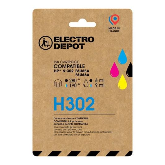 Cartucho de tinta negra y color HP H 302 compatible con ELECTRO DEPOT