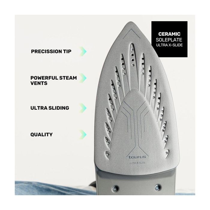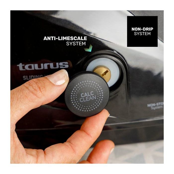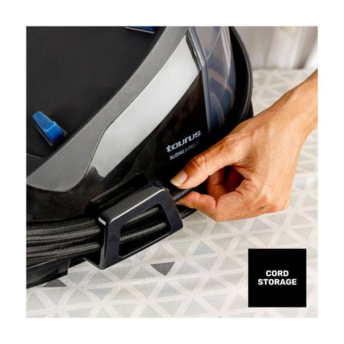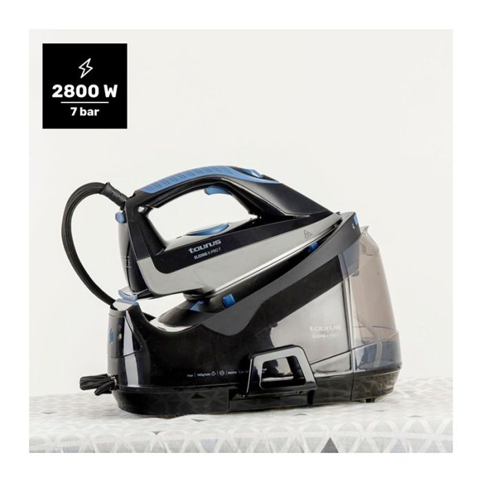 | Características adicionales | El centro de planchado Sliding X-Pro 7 de Taurus combina 2800 W de potencia, 7 bares de presión y vapor constante de 140 g/min para ofrecer resultados profesionales en casa. Con vapor seco o húmedo, suela ultra deslizante y depósito de 1,5 l con sistema Non Stop, te permite planchar sin pausas y con máxima comodidad. Elimina bacterias, cuida tus prendas y transforma tu rutina de planchado con un solo aparato. 2800 W máx.: gran potencia para alcanzar la temperatura ideal rápidamente y eliminar arrugas incluso en tejidos gruesos. 7 bar de presión de vapor: alta presión profesional que penetra profundamente en las fibras, dejando la ropa perfectamente lisa en menos tiempo. Opción vapor seco y vapor húmedo: elige entre un planchado con vapor para resultados impecables o en seco para prendas delicadas. Depósito de agua extraíble Non Stop System: permite rellenar el agua sin tener que apagar ni esperar a que se enfríe, para un planchado continuo y sin interrupciones. Depósito de 1.5l de capacidad: autonomía prolongada que permite planchar grandes cantidades de ropa sin tener que rellenar constantemente. Vapor antibacteriano: elimina hasta el 99,9 % de bacterias de los tejidos, dejando la ropa más higiénica y fresca. Vapor constante de 140 g/min: flujo de vapor potente y estable que garantiza resultados profesionales; es una cifra excelente para uso doméstico intensivo. Botón de bloqueo de la salida de vapor para un vapor constante: mantiene el vapor constante sin tener que mantener el gatillo pulsado, ideal para sesiones largas. Suela Ultra X-Slide: ofrece un deslizamiento perfecto sobre todo tipo de tejidos, evitando enganches y facilitando el planchado. Regulador de vapor y temperatura: adapta el planchado a cada tipo de tejido para proteger las prendas más delicadas. Sistema antical: evita la acumulación de cal y alarga la vida útil del centro de planchado. Sistema anti goteo: evita las molestas manchas de agua incluso a bajas temperaturas. Auto-apagado a los 8 min: máxima seguridad y ahorro energético si te olvidas la plancha encendida. Avisador de vapor listo Luz de calentamiento: muestra de forma visual cuándo la plancha está alcanzando la temperatura ideal. |
