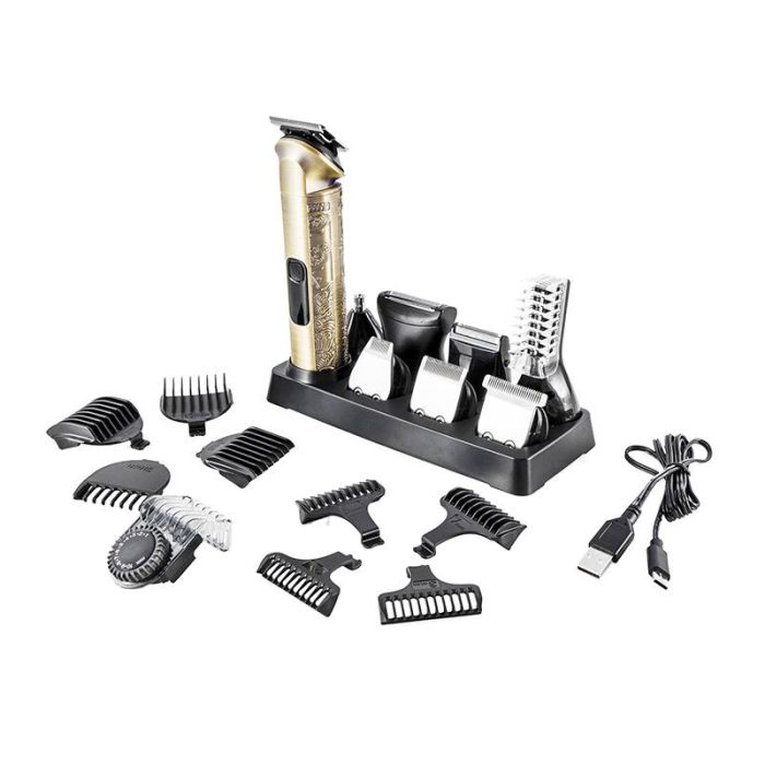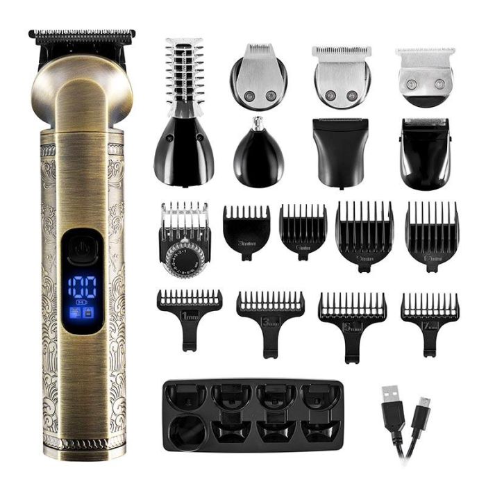 | Descripción larga (Websites) | • Potencia: 5W • Cuchilla de acero inoxidable, cuerpo metálico • Batería de litio recargable: 1200mAh • Autonomía: 160 min - Tiempo de carga: 1,5 horas • Velocidad del motor: 6800 rpm • Los dientes de corte finos permiten un corte extremadamente preciso • Ancho de cuchilla: 42 mm máx. • Listo para usar, plug and play • Interruptor de encendido/apagado • Nivel de ruido: 58dB • 8 cabezales intercambiables • Cabezal principal (con 4 peines de 1/3/5/7 mm) • Cortapelos (cuchilla en T, con 4 peines de 3/6/9/12 mm) • Recortabarbas (cuchilla en U con peine ajustable de 1 a 10 mm) • Recortadora de precisión • Recortadora corporal • Recortadora de nariz/orejas • Recortadora de cejas (con peine ajustable 3/6/9 mm) • Pantalla LED: indica la capacidad de la batería, recordatorio de carga y recordatorio para lubricar las cuchillas • IPX6, la cortadora es waterproof y lavable bajo el agua. • Este producto está diseñado para usarse con o sin cable. • Accesorios incluidos: 1 x Cable de carga USB, 1 x Cepillo de limpieza, 10 x Peines, 1 x Aceite lubricante y 1 x base de almacenamiento. |