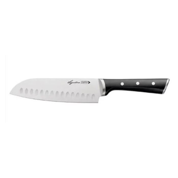 | Características adicionales | Cuchillo LAGOSTINA ICE FORCE santoku, hoja de 18 cm Tecnología: la hoja de acero inoxidable de este cuchillo cuenta con un temple especial a -120°C. Este tratamiento, utilizado por especialistas en cuchillería, refuerza la resistencia de la hoja a la corrosión y garantiza un rendimiento de corte duradero, hasta 2 veces superior en comparación con otras gamas de acero inoxidable Lagostina. Alta calidad, garantía de 10 años Apto para lavavajillas, pero se recomienda limpieza a mano. Manejar con precaución: hoja afilada. Solo para uso doméstico en cocina. |