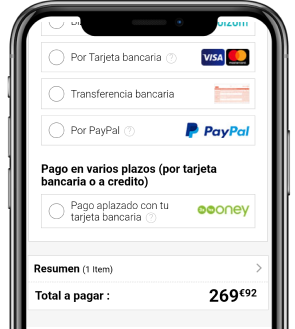 Tan fácil como pagar con tu tarjeta habitual y con la ventaja de poder añadir varios plazos (entre 3 y 24).