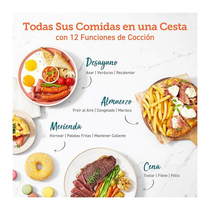 | Información adicional | ¡Nota! De acuerdo con IEC/EN 60335-2-9 sobre seguridad, la freidora sin aceite inteligente debe presionarse físicamente el botón "Start" y luego operarse a distancia Ahorra hasta un 55% en Energía - Se puede cocinar de forma más económica simplemente cambiando a freidora sin aceite COSORI; También se reduce el tiempo a la mitad que en el horno convencional y se consume menos electricidad con ella No Es Necesario Precalentar, Ni Agitar - Dual Blaze tiene las calefacciones superior e inferior, y sensores duales controlan la temperatura más precisa, lo que hace que la comida se caliente de manera más uniforme sin agitarla manualmente Tecnología 360Thermo IQ - Usando una cesta de aluminio puro de tres veces más gruesa, se calienta más rápido y cocine de manera más uniforme y eficiente, lo que permite obtener fácilmente alimentos de menos aceite mientras ahorrar tiempo y energía VeSync APP Gratuita - La aplicación gratuita VeSync permite controlar la freidora de forma remota, observar el progreso de la cocción 12 Modos Preconfigurados - 6 menús preestablecidos y 6 modos de función; Puede comenzar a cocinar con un solo toque, cambiar temperatura de ℃ a ℉, y también puede personalizar el tiempo y la temperatura que desee, lo que le permite explorar más diversión culinaria Gran Capacidad de 6,4L - Satisface una familia de 4-6 personas para la cena; La mayor capacidad brinda comidas más deliciosas Recetas Gratuitas Personalizadas - Libro de 30 recetas en español, y más recetas en línea, que son cuidadosamente desarrollados por los chefs profesionales de COSORI; Puede obtener alimentos más deliciosos y nutritivos Apta para Lavavajillas - Fácil de limpiar con agua jabonosa y tiene un revestimiento antiadherente Componentes incluidos: 1 x COSORI Freidora sin Aceite, 1 x Cesta de comida, 1 x libro con recetas, 1 x manual de usuario |