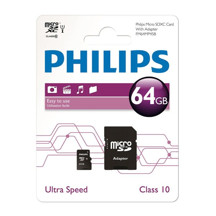 Tarjeta Micro SD PHILIPS Clase 10 de 64Gb