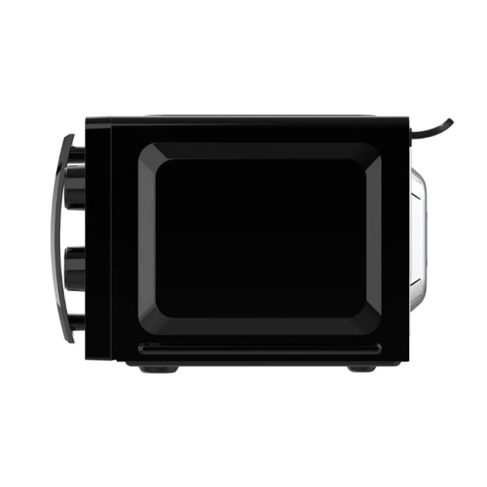 Información adicional | Especificaciones Potencia: 700W Capacidad: 20L Temporizador: 30 min 6 niveles de potencia Función descongelación por tiempo Control mecánico Puerta de cristal templado elegante y resistente en negro Luz interior Fácil instalación |