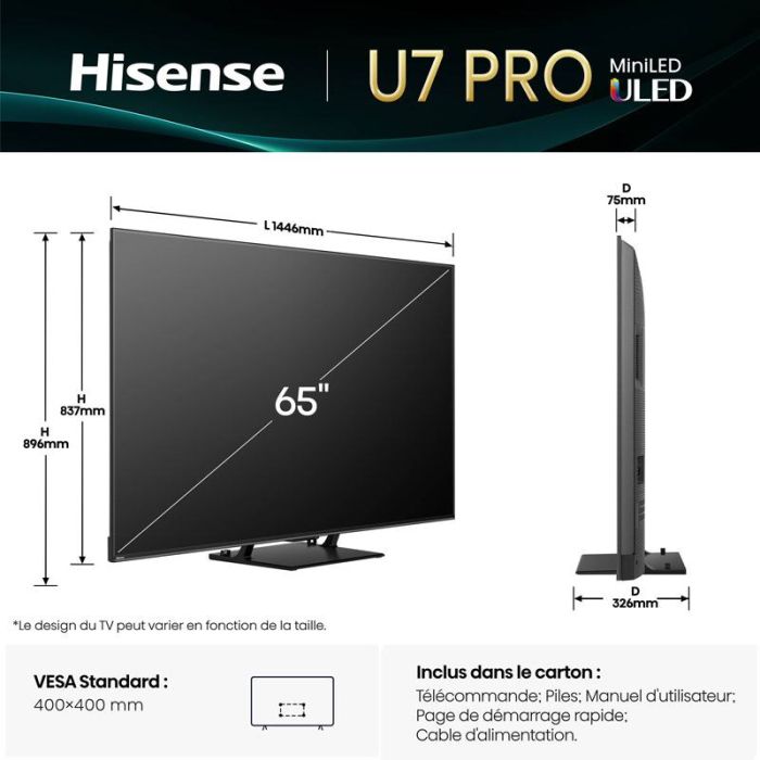 TV MINILED HISENSE 65U7Q PRO 165Hz