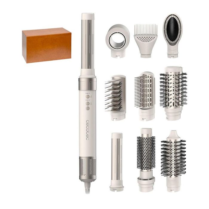 Información adicional | 10 cabezales: con el moldeador multifunción, conseguirás una mayor variedad de peinados con sus diferentes cabezales: secador, cepillos de 33 mm, 40 mm y 70 mm, 2 peines, 2 cilindros rizadores (derecha e izquierda), cepillo desenredante y peine voluminizador. 3 velocidades de flujo de aire: regula el flujo de aire de tu moldeador según las necesidades de tus peinados. Función de aire frío: ayuda a fijar y sellar el peinado. Control inteligente del calor: evita sobrecalentar tu cabello cuidándolo en todo momento. 3 ajustes de temperatura: cuida de tu cabello eligiendo la temperatura que más le convenga. 3 velocidades de flujo de aire: regula el flujo de aire de tu moldeador según las necesidades de tus peinados. Función de aire frío: ayuda a fijar y sellar el peinado. Diseño ergonómico: con múltiples acabados premium, el moldeador te sorprenderá tanto por sus resultados como por su diseño. Limpieza del filtro: apretando el botón de temperatura durante unos segundos tras apagar tu moldeador, se activa la opción de limpieza, mediante la cual el aire sale por el filtro expulsando toda la suciedad retenida. Estuche de almacenamiento: incluye un estuche de almacenamiento de cuero para facilitar la organización de todos sus cabezales |