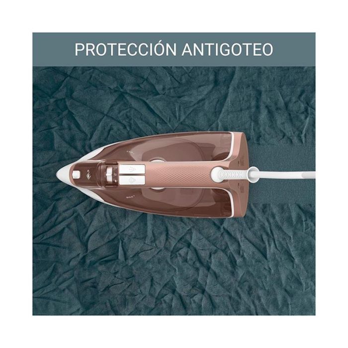 Información adicional | Planchado rápido y resultados perfectos Plancha de 2400 W con vapor continuo eficiente de 40 g/min para un planchado rápido, además de un golpe de vapor de 120 g/min Tecnología innovadora que garantiza una distribución óptima del vapor y un buen deslizamiento Punta de precisión para acceder fácilmente a áreas de difícil acceso, como bordes, costuras y cuellos Mango cómodo con ergonomía mejorada para un agarre que hace que el planchado sea suave y fácil Sistema de protección antigoteo, para prendas impecables y sin manchas que te ayudan a lucir lo mejor posible todos los días Plancha ligera, ideal para vaporizar prendas delicadas y grandes como trajes o incluso cortinas Es posible encontrar condensación dentro del depósito de agua ya que todas las planchas se prueban previamente |