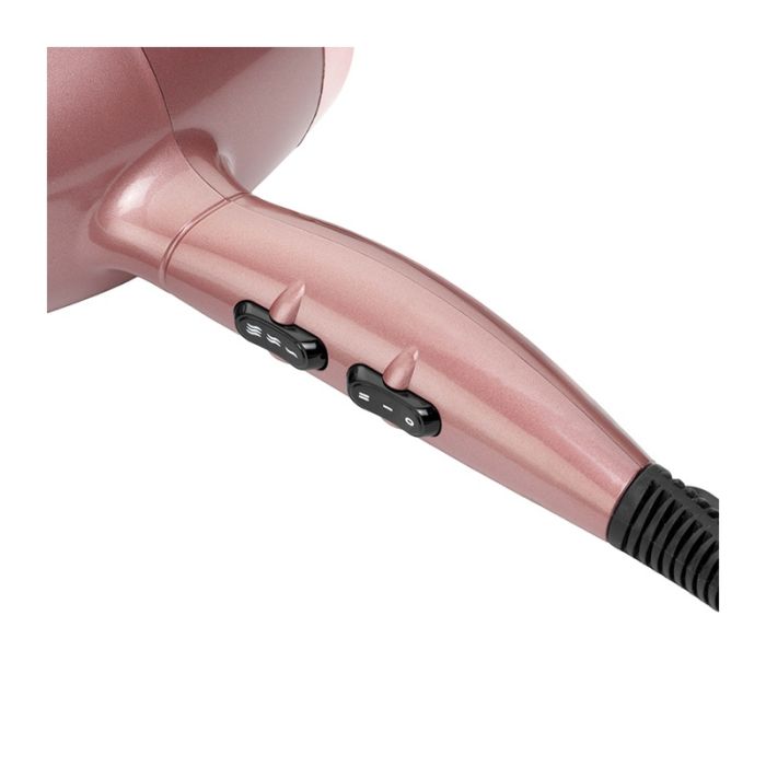 | Características adicionales | SECADOR DE PELO BaByliss IMPRESSION DRYER (5913PE) Rendimiento Profesional: Equipado con un motor Super DC (HTDC) de 2000 vatios que ofrece una velocidad de aire de 95 km/h para un secado rápido Calidad de Fabricación: Producto fabricado en Italia, garantizando robustez y experiencia profesional Diseño Ergonómico: Formato ligero y compacto diseñado para ofrecer una comodidad de uso óptima Ajustes Personalizables: Ofrece 3 niveles de temperatura y 2 velocidades para adaptarse a todo tipo de cabello Secado de Precisión: Incluye un concentrador fino de 9 x 75 mm para un peinado preciso Libertad de Movimiento: Equipado con un cable profesional de 2,2 metros para una manipulación facilitada Mantenimiento Simplificado: Incluye un filtro trasero extraíble para prolongar la vida útil del aparato Diseño Elegante: Acabado cuidado en un color rosa dorado Garantía del Fabricante: El aparato cuenta con una garantía de 3 años |