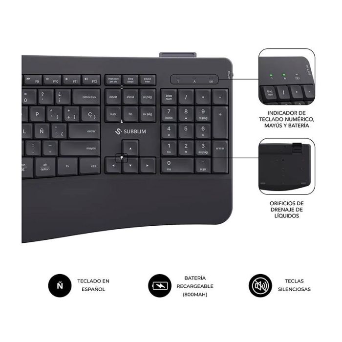 Pack Teclado+Raton Ergonomico OFFICE PROWAVE Negro SUBBLIM