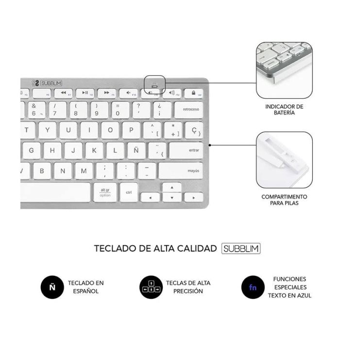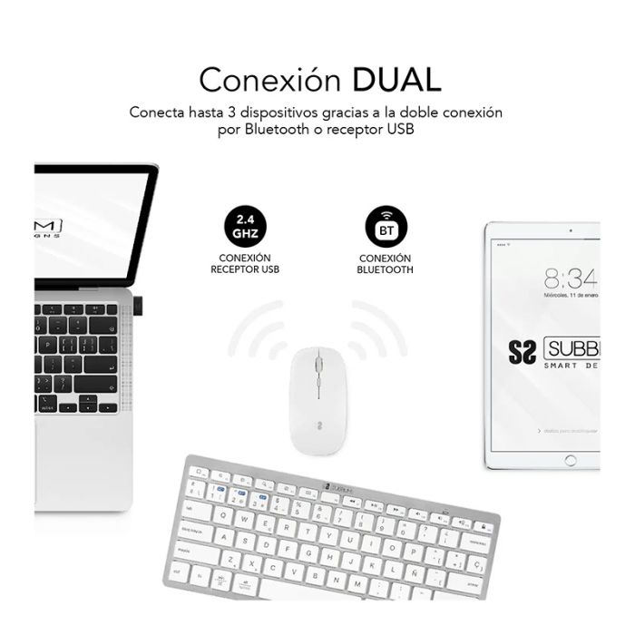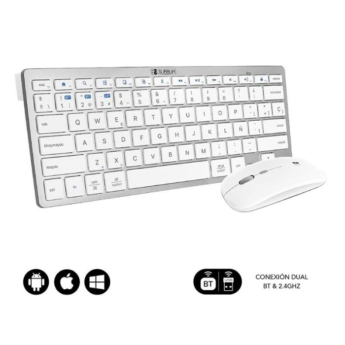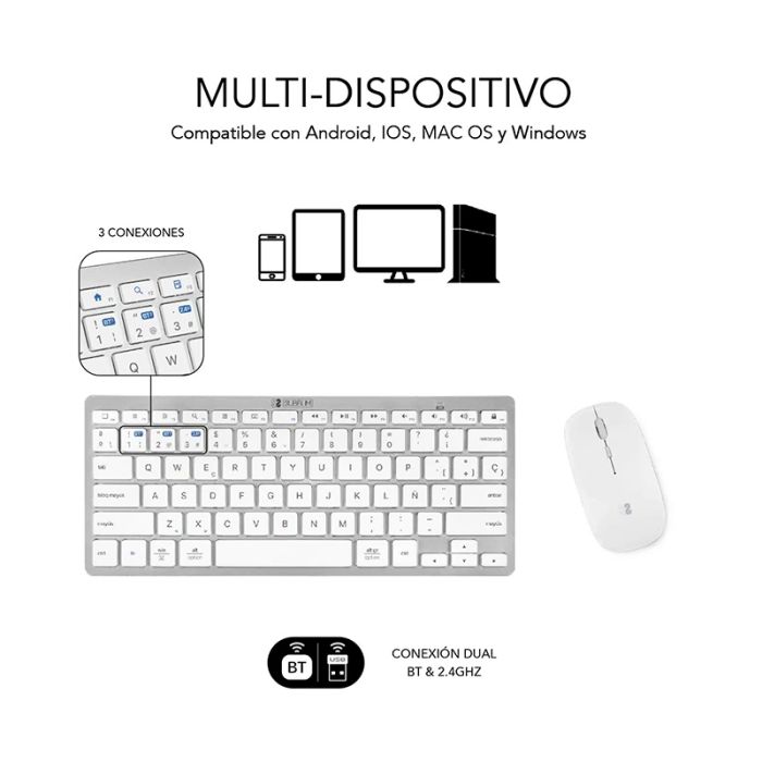Pack Teclado+Raton Multidispositivo Compacto Plateado/Blanco SUBBLIM