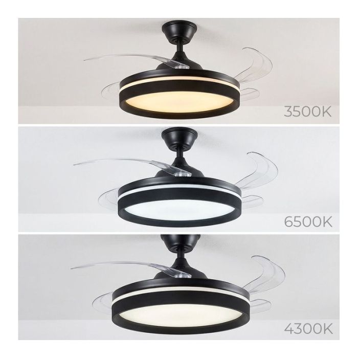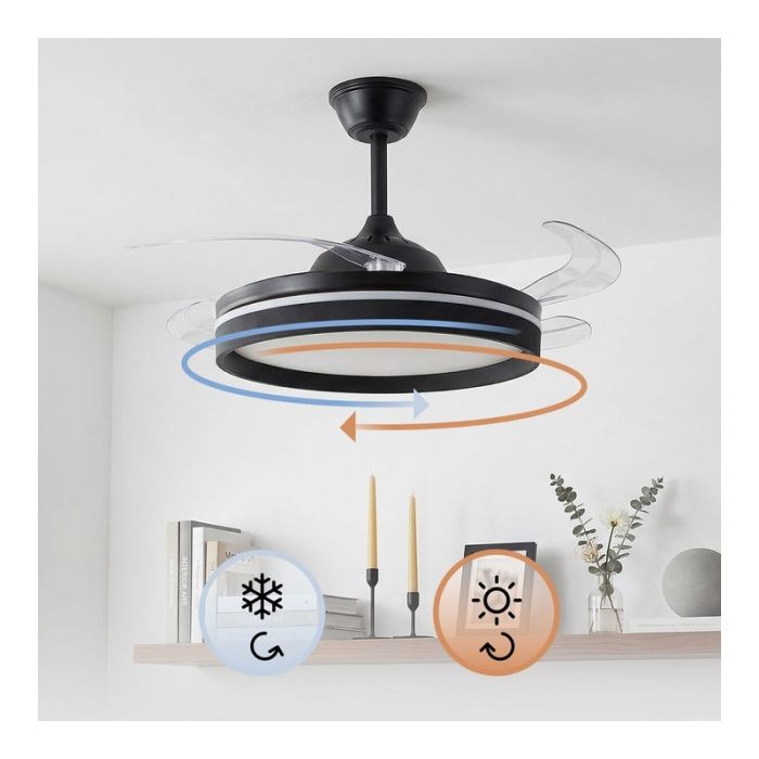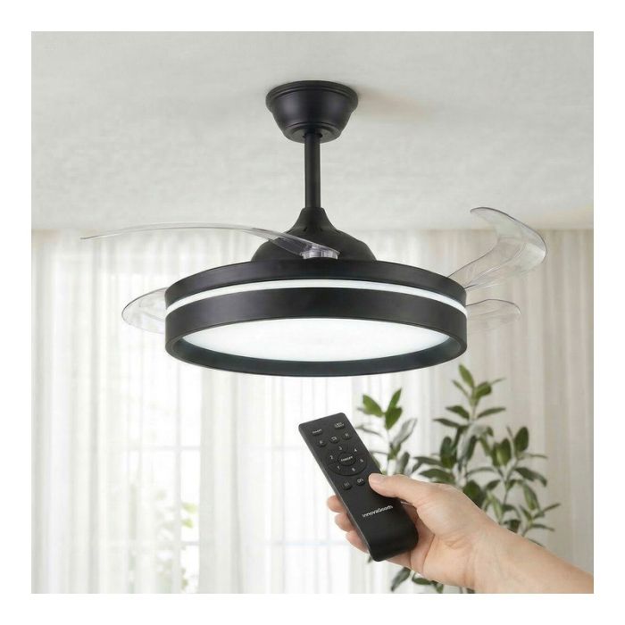 INNOVAGOODS Ventilador de Techo con Luz LED y Aspas Retráctiles Motor DC Silencioso 6 Velocidades Negro